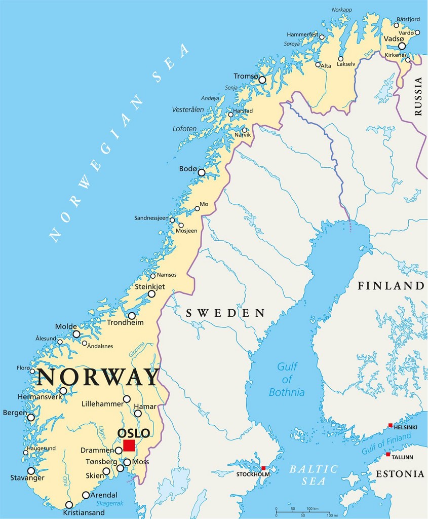 La Norvège étant loin d'être un plat pays, une multitude de maisons isolées et hameaux, de petits villages, parfois de gros bourgs plus importants comme les ports de Sandnessjoen (à la sortie un élégant pont enjambe un fjord allongé), Nesna et Ornes...