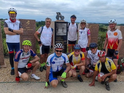 Quelques nouvelles de notre Paris 2024. Nous venons d achever les 3 étapes les plus difficiles qui nous amenaient de Revel à St Léonard de Noblat où nous nous sommes recueillis sur la stèle de Raymond qui nous a fait vibrer par ses exploits quand nous étions bien plus jeunes.