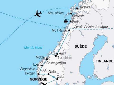 La ville de Bodo, à 150 km au nord du Cercle polaire, rasée aux 2/3 pendant la Seconde Guerre mondiale, aujourd'hui 50.000 habitants, marque le début du grand nord norvégien (port très actif, terminus de trains, université, base de l'OTAN...).