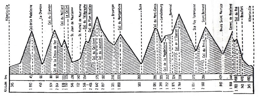 Partis le lundi matin sous le soleil, ils franchirent jusqu'au vendredi midi pas moins de 20 cols dont :