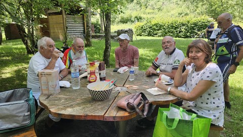L’accueil fut à la hauteur du cadre exceptionnel, grâce à l’équipe de Foix Cyclo et du Codep. Une table généreusement garnie de gâteaux et de boissons fraîches nous attendait. Après de chaleureuses discussions, les cyclos sont repartis en emportant avec eux de précieux souvenirs de ces moments conviviaux.