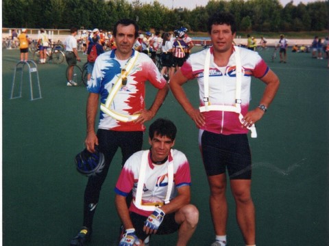 En fait il convient de le dire d'entrée que Jacky n’a que très peu pédalé au sens propre du terme. Cependant si ses trois compères ont en fait réalisé 723 km en trente cinq heures de pédalage c’est peut-être lui qui est revenu le plus fatigué puisqu' il était tout à la fois l'accompagnateur, le mécano (il faut remarquer qu'il n’y eut même pas une crevaison, preuve que le matériel était bien bichonné), l’infirmier grâce à son action permanente il n'y eut ni abandon ni défaillance), le cantinier (qui préparait musettes, bidons et même repas), le chronométreur etc.