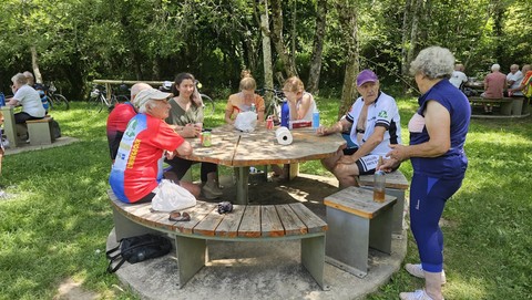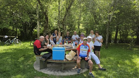 De retour vers midi, tous nos vaillants randonneurs et cyclistes, se sont retrouvés au Parc du village, avec quelques personnes supplémentaires venues pour partager le repas, dans une ambiance très conviviale.